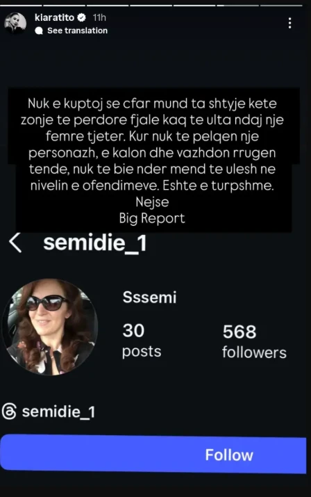 Në një postim në “Instastory”, Kiara ka publikuar emrin dhe foton e profilit të një zonje,
