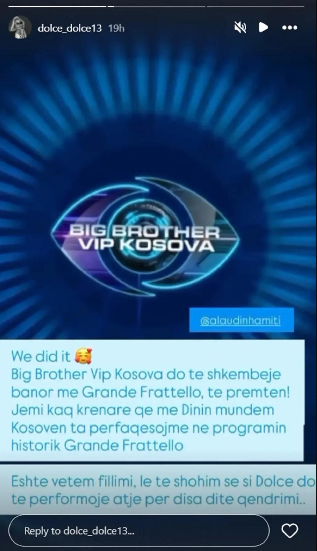 Dolce është zgjedhur që të jetë banorja që do të dërgohet të premten e kësaj jave në Grande Fratello në Itali.