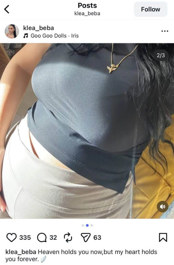 Fatkeqësisht, sekretin e zbuluan vetëm në këtë moment tragjik. Klea vendosi të ndajë dhimbjen e saj me ndjekësit përmes një postimi prekës në Instagram.