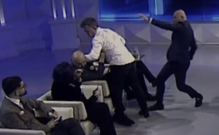 Situata doli jashtë kontrollit kur diskutimi për Gjykatën Speciale kaloi në rrafsh personal, duke bërë që moderatori Blendi Fevziu dhe të pranishmit e tjerë të ndërhyjnë me shpejtësi për të parandaluar një sherr fizik në studio.