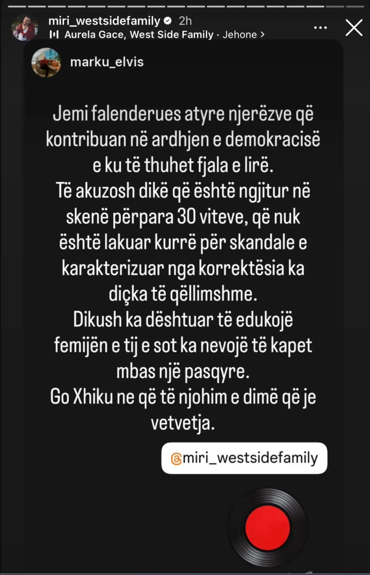 Pasditen e sotme disa faqe në instagram i kanë dalë në krah Mirin,
