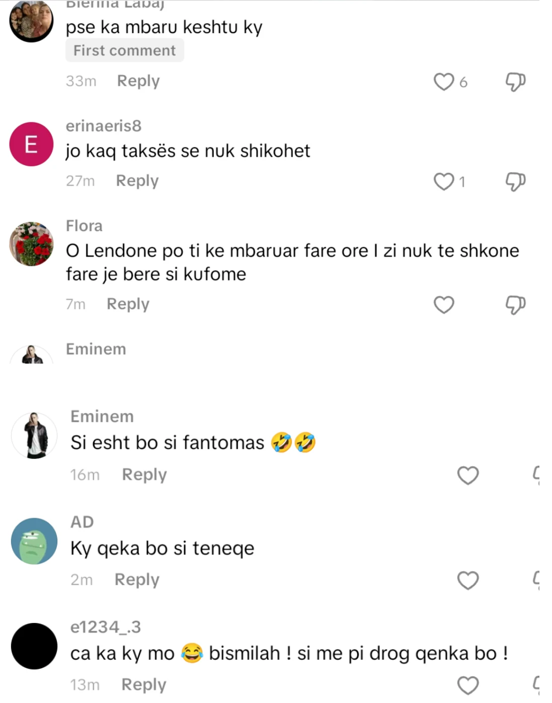 Disa prej komenteve më të theksuara ishin: “pse ka mbaru keshtu ky,” “O Ledjon po ti ke mbaruar fare ore i zi nuk te shkone fare,” dhe “Si eshte bere keshtu”.