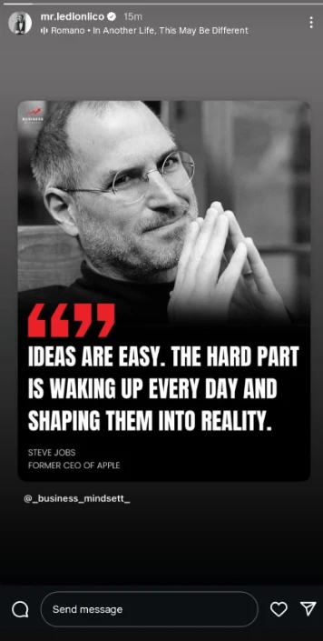 Sot, vetëm pak orë pasi Kosova e bëri fakt të kryer këtë lëvizje, Ledioni ka publikuar një thënie të Steve Jobs në “Instastory” që duket si një thumb i drejtpërdrejtë për situatën: