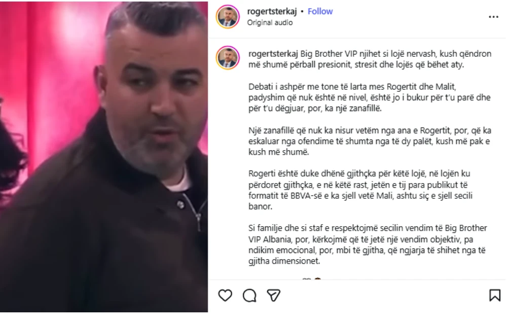 “Respektojmë çdo vendim të produksionit, por kërkojmë drejtësi dhe balancë në gjykim”, përfundon reagimi i familjes, duke i qëndruar pranë Rogertit në këtë moment të vështirë brenda shtëpisë së BBVIP.
