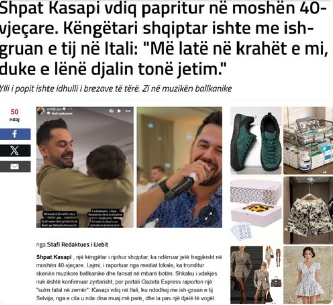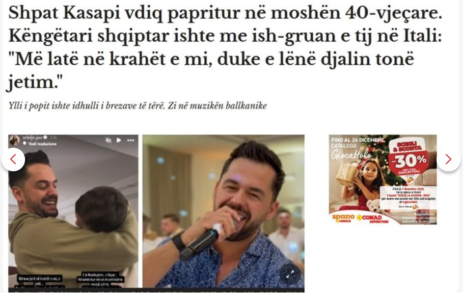 Corriere Adriatico: Shpat Kasapi vdiq papritur në moshën 40-vjeçare. Këngëtari shqiptar ishte me ish-gruan e tij në Itali: “Më ike në krahët e mi, duke e lënë djalin tonë jetim.”